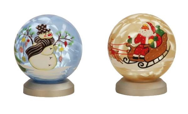2 verschiedene Motive, Kugel Durchmesser ca. 9 cm, Gesamthöhe incl. Sockel ca. 11 cm