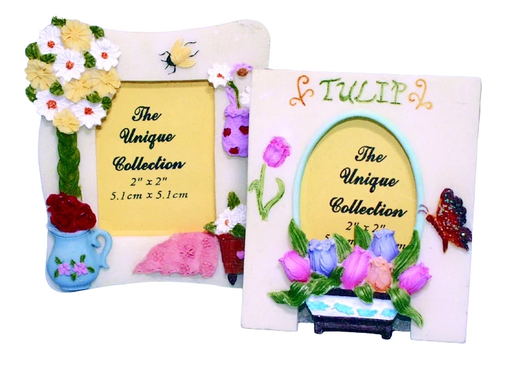 Fotorahmen mit Frühjahrsblumen aus Poly, sortiert, 8,5 x 7 cm großKeine einzelne Farb- und Motivauswahl möglich,bei Mehrfachbestellung erfolgt die Lieferung sortiert.