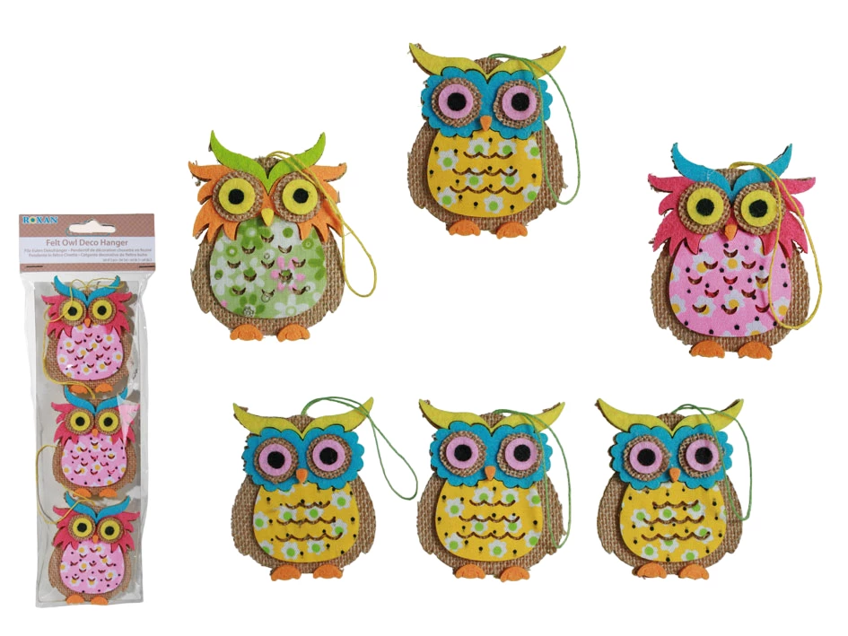 Filz-Eulen Dekohänger, 3er-Set im SB-Beutelje ca. 8x7 cm großDekoartikel kein Spielzeug!