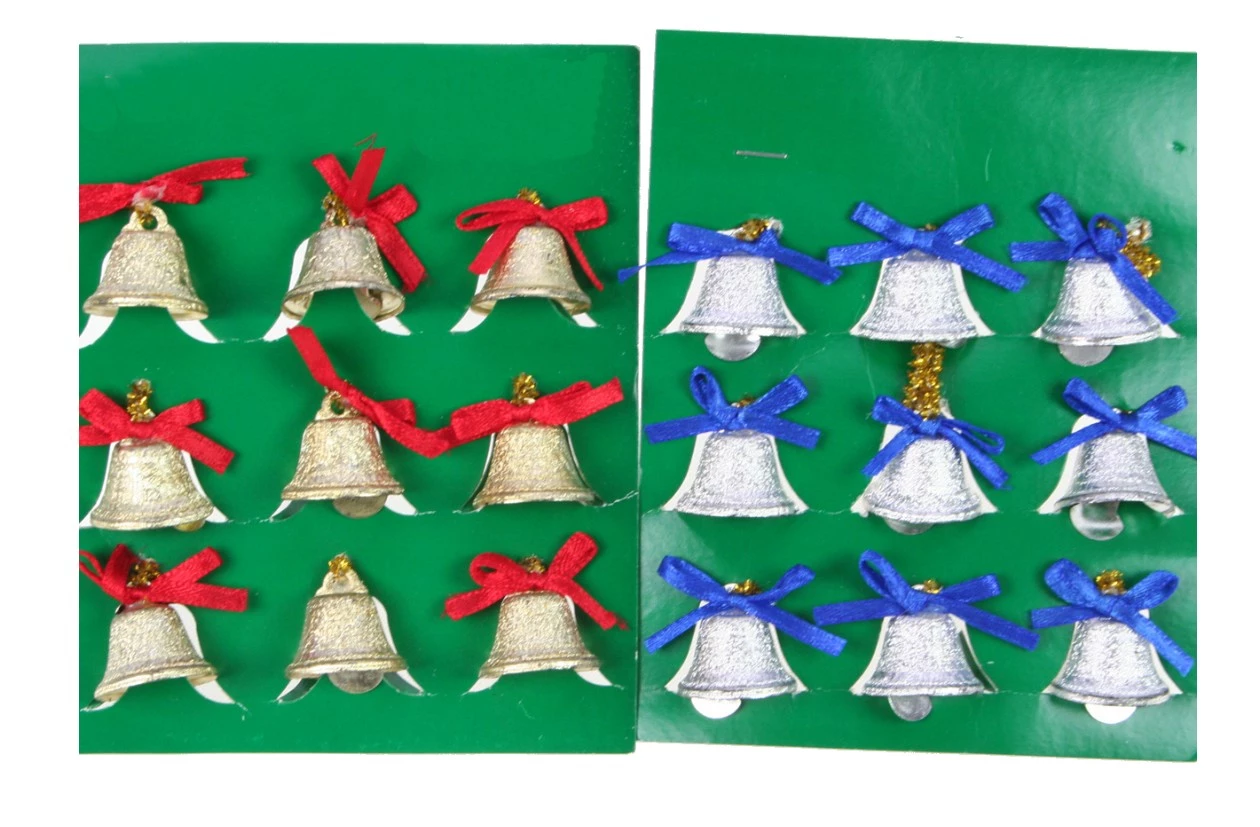 Dekoglocken Metall, farbig sortiert, 9er-Set(rot, gold, blau)Durchmesser: 2,5 cm im BlisterpackKeine einzelne Farbauswahl möglich,bei Mehrfachbestellung erfolgt die Lieferung sortiert.