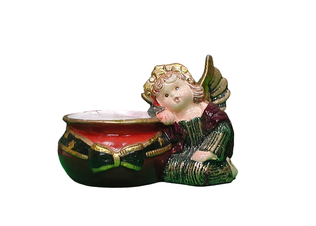 Engel an Kerzentopf lehnend