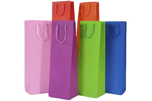 Dekorative Flaschentragetaschen unifarbigsortiert, Größe: 11 x 37 x 9,5 cm mit Tragekordel
