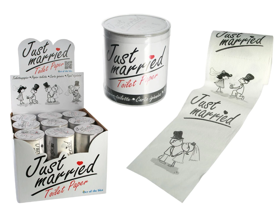 Lustiges bedrucktes Toilettenpapier 24 mtr. auf der Rolle in einer Rundverpackung mit Spaßbanderole