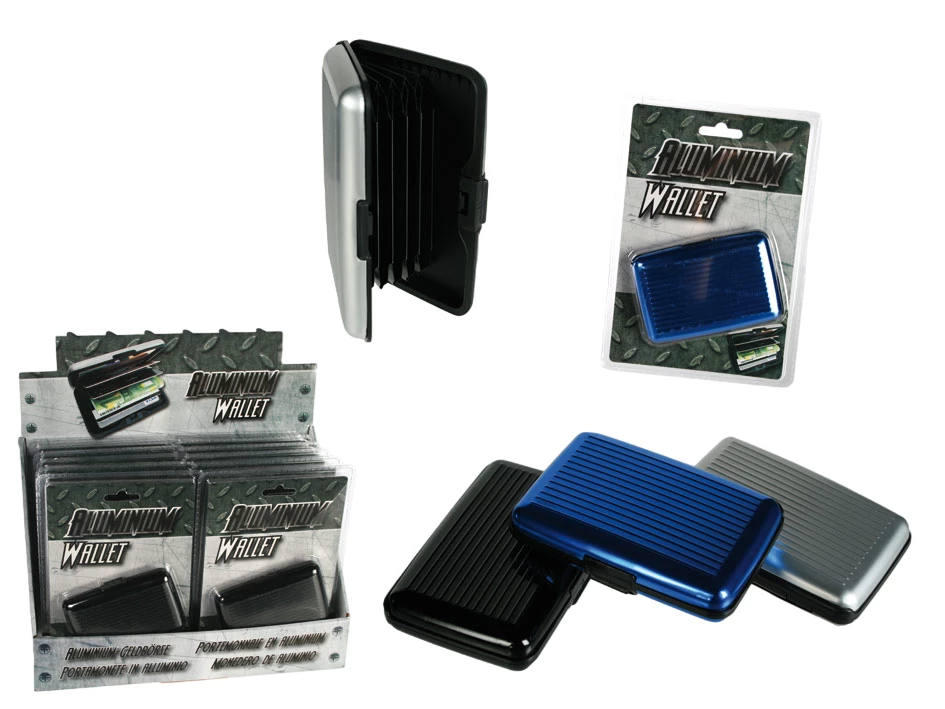 kleine Geldbörse für Geldkarten, Scheine und Kleingeld aus Aluminium ca. 11 x 7 cm groß sortierte Farben, einzeln geblistertKeine einzelne Farbauswahl möglich,bei Mehrfachbestellung erfolgt die Lieferung sortiert.