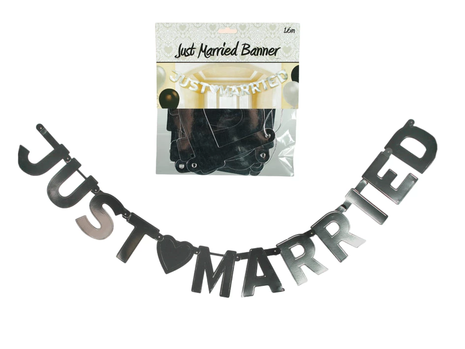 Girlande Just Married, silbermetallic finish, Länge: ca. 1,6 m, in Polybeutel mit Headercard