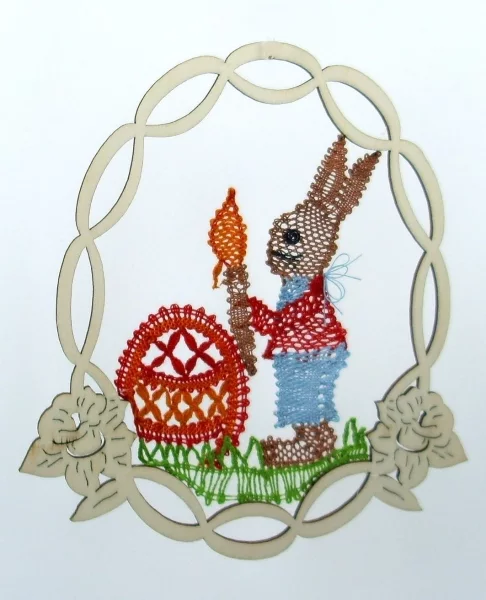 Klöppelbrief Malerhase für gewellten Ovalrahmen