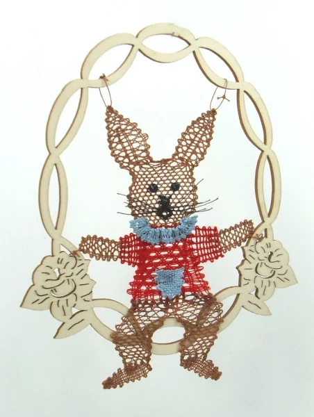 Klöppelbrief Schaukelhase für gewellten Ovalrahmen