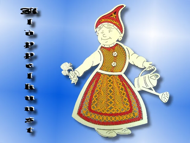 Klöppelrahmen Fensterbild ZWERGENFRAU
