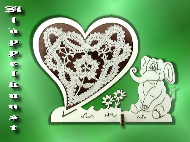 Klöppelrahmen Herz mit Elefant
