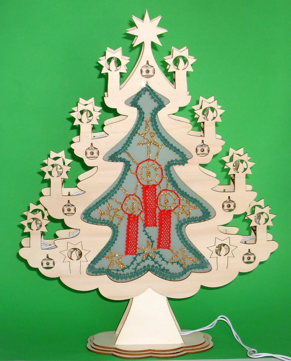 Klöppelrahmen großer Weihnachtsbaum mit Beleuchtung