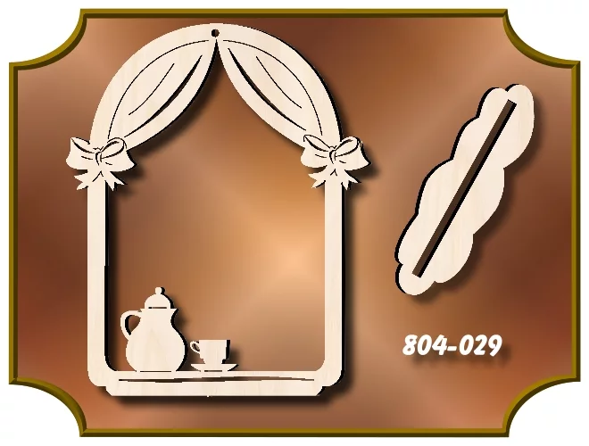 Bogen mit Vorhang und Kaffeesetca. 81x100mm groß incl. 1 passende BodenplatteUnsere Klöppelrahmen sind lasergeschnitten mit feinen Details,