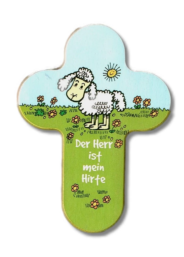 Feines Buchenholzkreuz mit Druck in moderner runder Form das ideale Erinnerungsgeschenk für verschiedene Anlässe wie z.B. Geburt, Taufe, Kommunion, Konfirmation, Firmung, Geburtstag