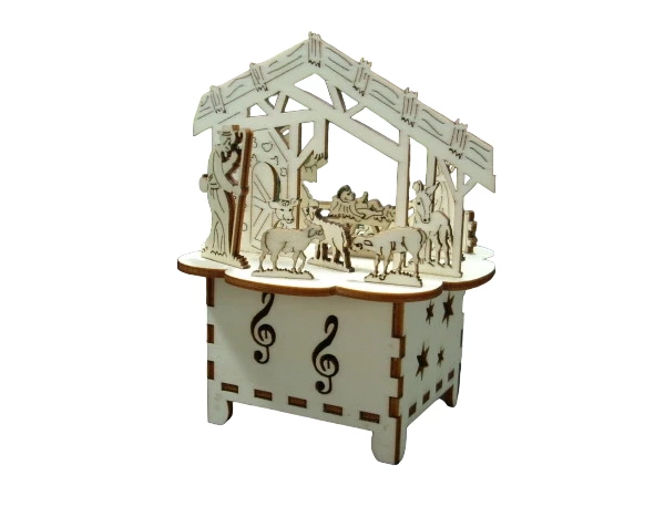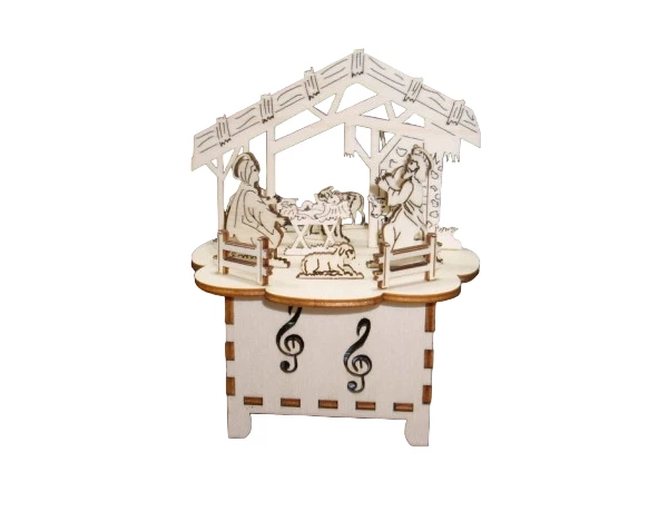 Eingebaut ist ein Walzenspielwerk zum aufziehen mit der Melodie"Stille Nacht, heilige Nacht"