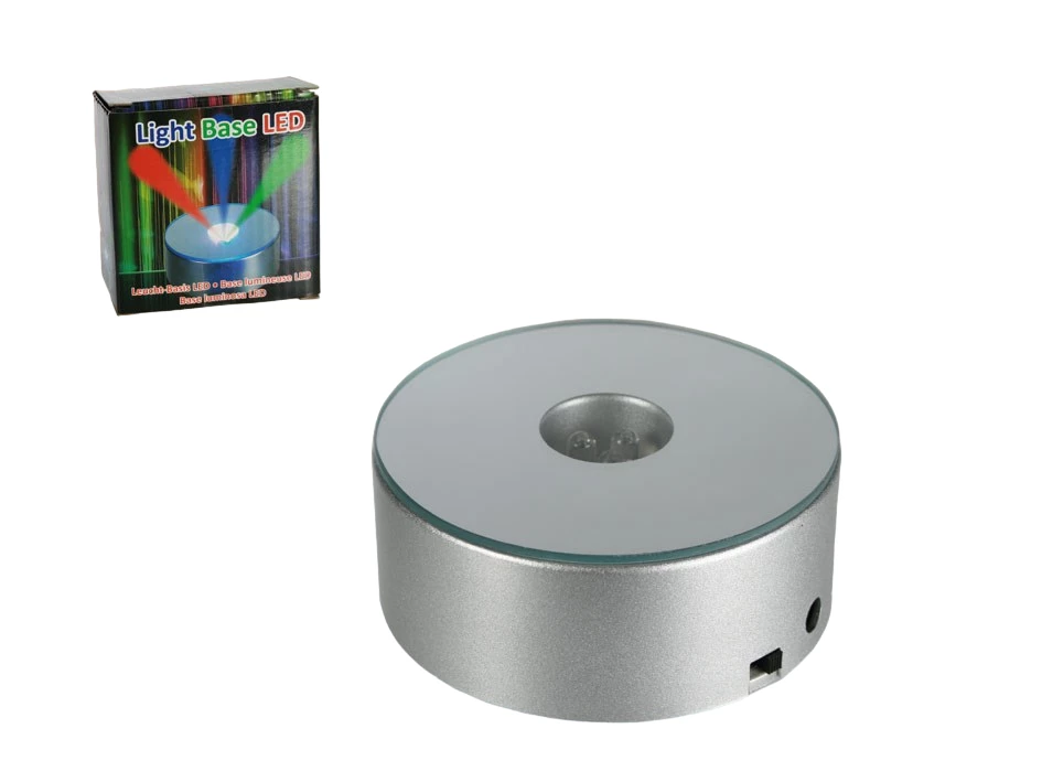Leuchtsockel für Glasartikel mit Spiegeloberfläche und 3 LED, die automatisch einen Farbwechsel machen (zum Betrieb sind 3 Batterien AAA/LR03 notwendig - nicht im Lieferumfang enthalten)