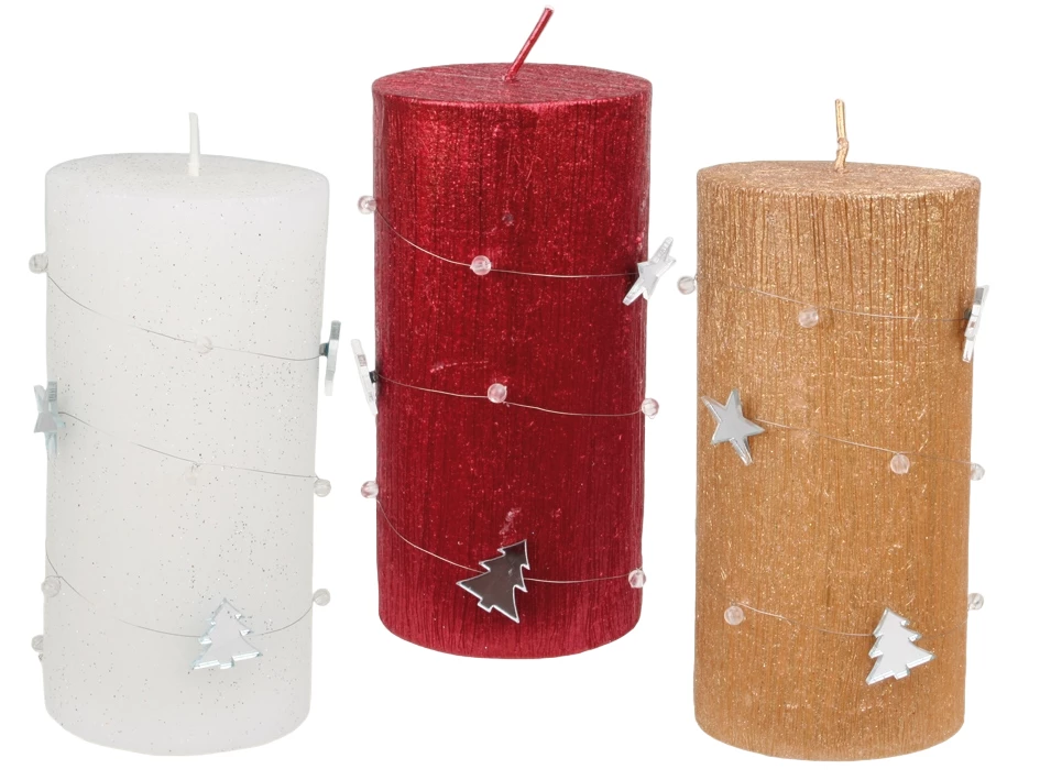 Dekorative Säulenkerze mit Weihnachtsdeko