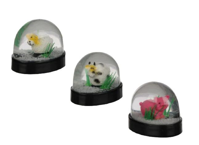 Schneekugel Farmtiere, 3-fach sortiert, ca. 8 cm hoch