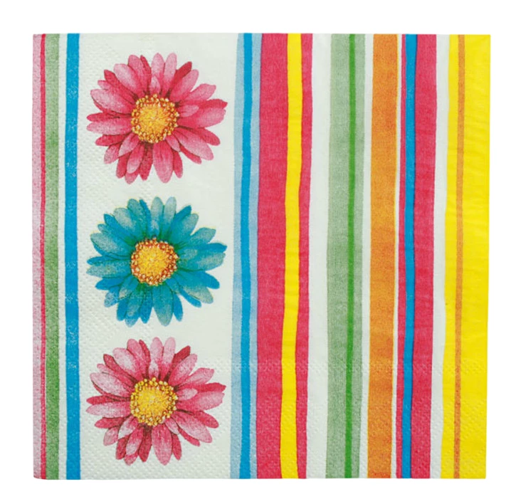 Papier-Servietten Blumendekor mit rot/gelben StreifenGröße: ca. 33 x 33 cm3-lagig20 Stück im Polybeutel