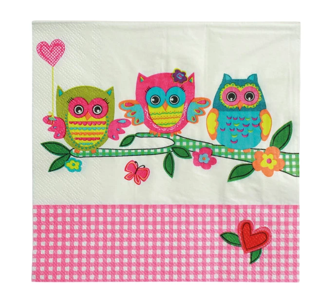 Papier-Servietten Eulendekor mit pink/beige kariertem RandGröße: ca. 33 x 33 cm3-lagig20 Stück im Polybeutel