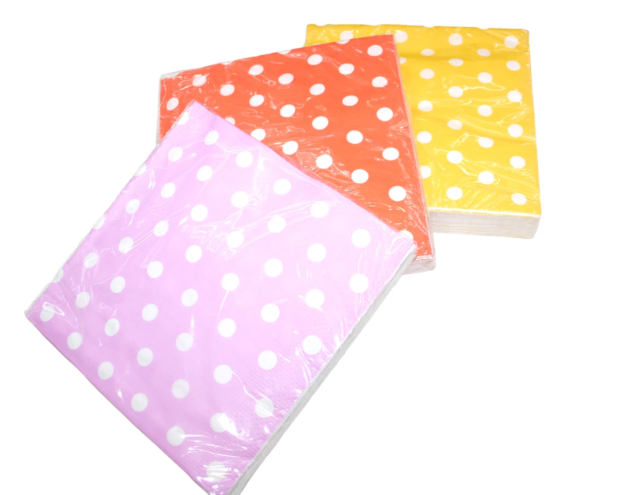 Design-Servietten uni, mit weißen Punkten, 3-lagig, 20er Packung, 3-fach sortiert in den Farben gelb, orange und pink, 33 x 33 cm