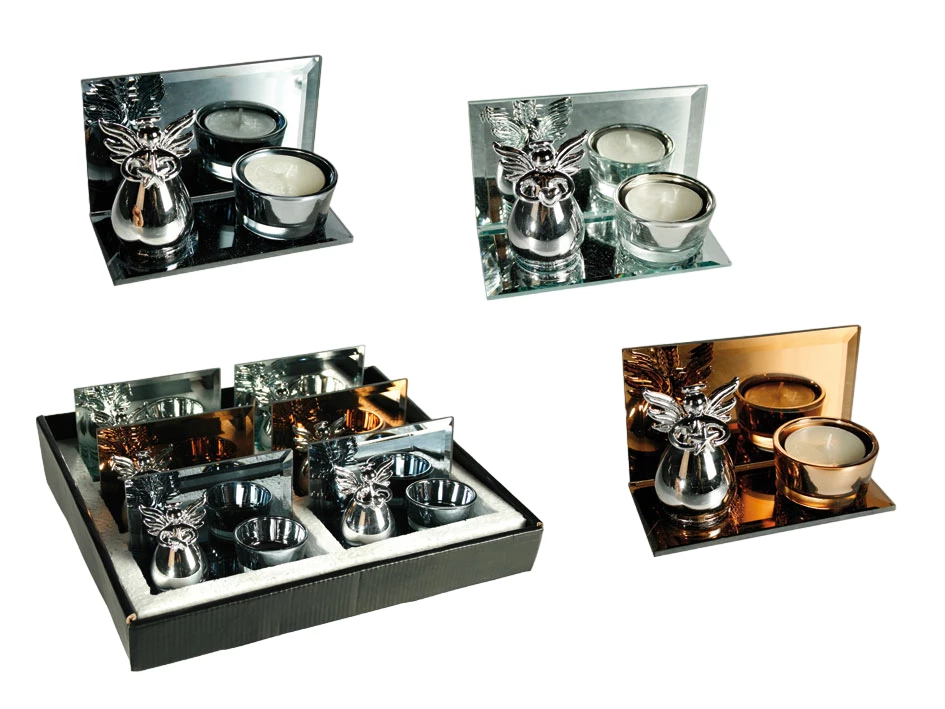 Hübsche Spiegel-Teelichthalter mit Engel,