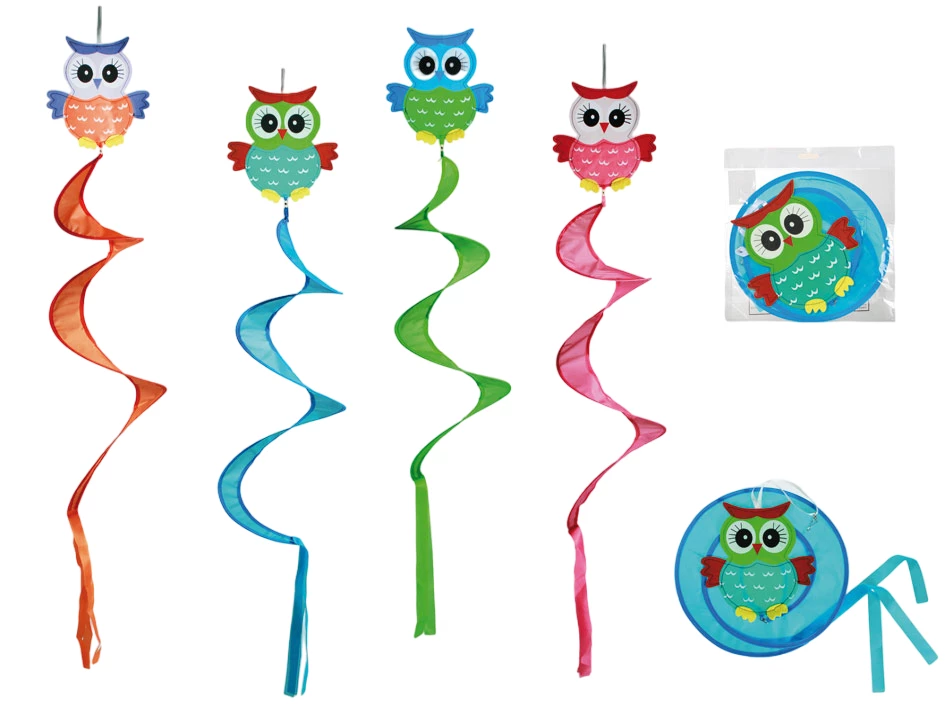lustige bunte Windspiele aus Nylon im EULENDESIGN ca. 115x28 cm, 3-fach sortierte Farbeneinzeln in Polybeutel verpackt